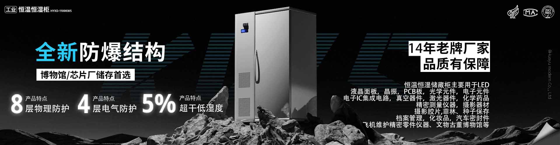華宇現(xiàn)代主營產(chǎn)品:恒溫恒濕柜,電子防潮柜,投影機柜,恒溫恒濕展柜,恒溫恒濕機,恒溫恒濕試驗箱